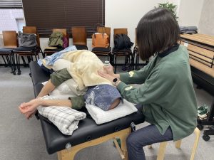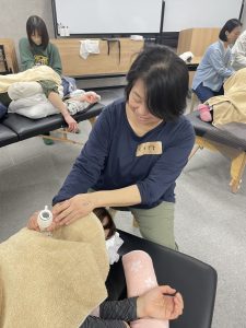 今回の「人へ」では、「白血球さん、安易に患部に来ないでください、、、、」をテーマに座学を、そして、午後からは「温圧器具」を使って実技を学んで頂きました