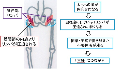 太ももの骨が内側に向くことで、鼠径リンパ節が圧迫される